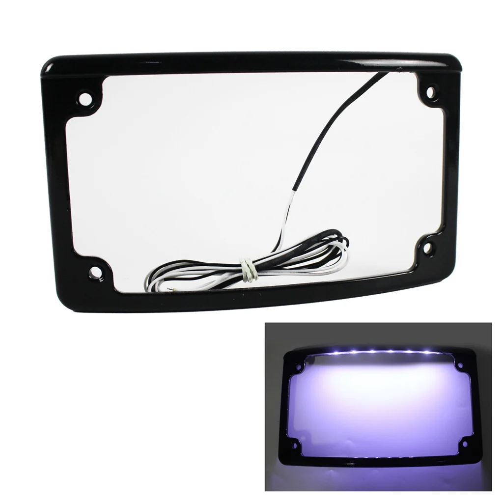 Black Radius 4 X 7 Curved Led Motorcycle License Plate Frame Harley Rear Fender / LPF-RAD-B-LP